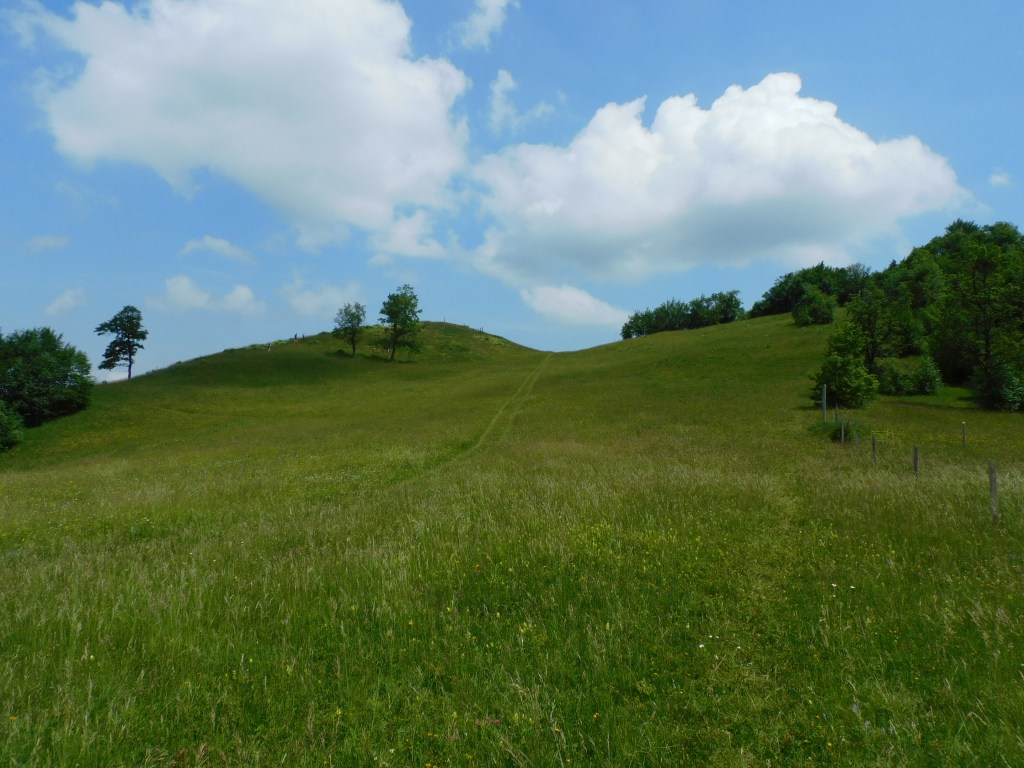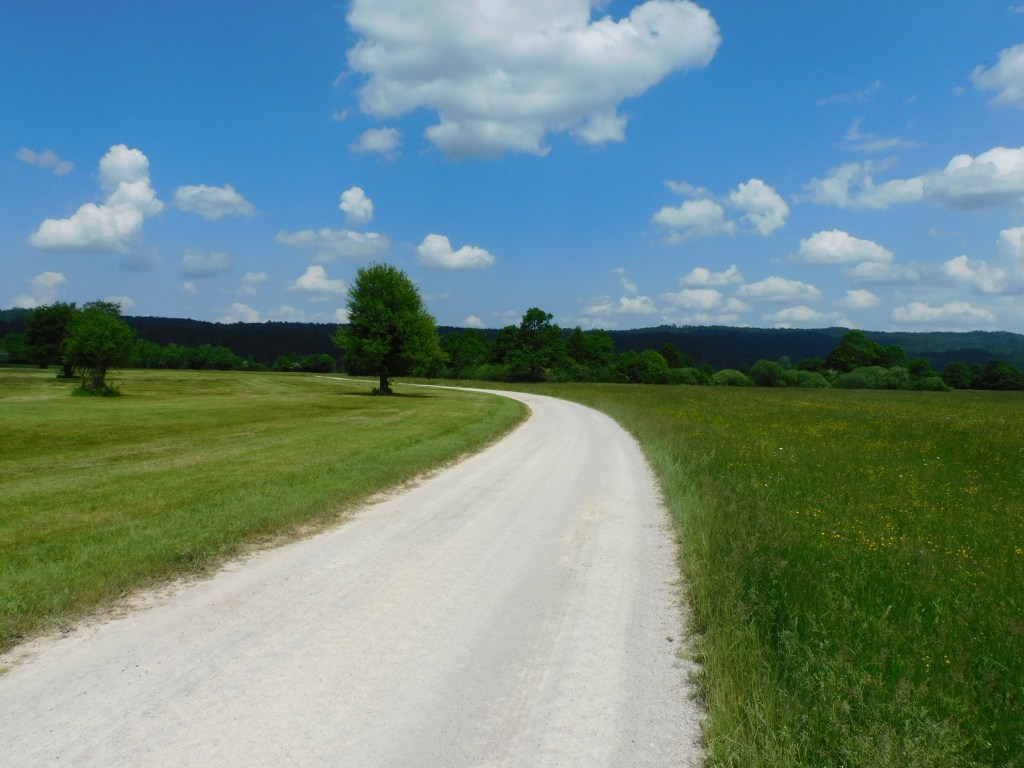 Primerjava med nepokošenim travnikom (pred prvo klošnjo) desno in pokošenim levo od ceste na Planinskem polju