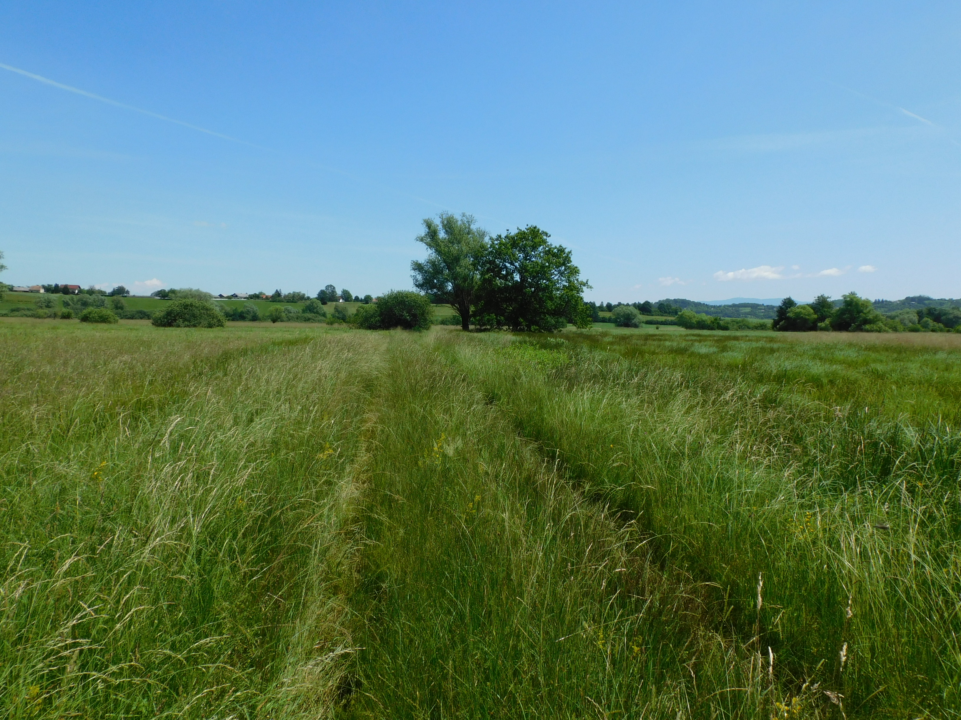 Bližnji prikaz Dobrave in zaris poti s terena junija 2022 (vir podlage: digitalni ortofoto, Geodetska uprava Republike Slovenije, november 2021)